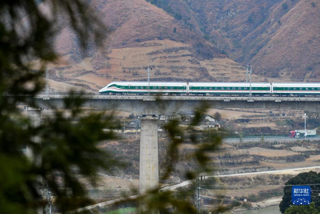 12月24日,一列復興號動車組在四川省冕寧縣境內的新成昆鐵路進行開通運營前的試跑。