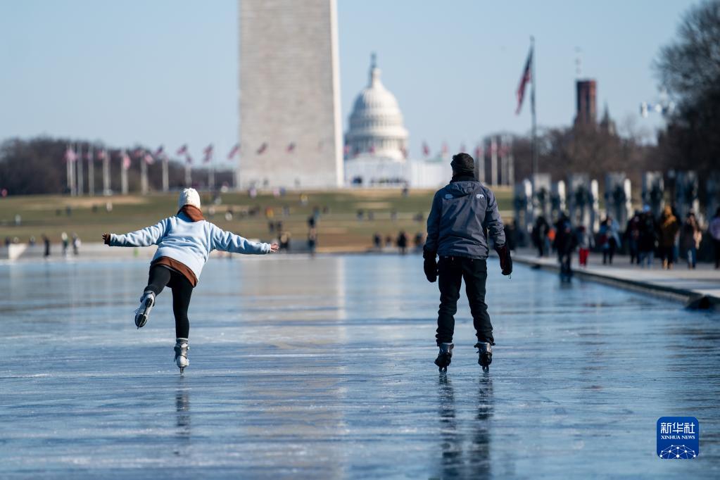 受冬季風暴影響,美國首都華盛頓迎來20多年來最冷圣誕節,國家廣場上的林肯紀念堂倒影池完全結冰,該市此前宣布出現寒冷天氣緊急狀況。