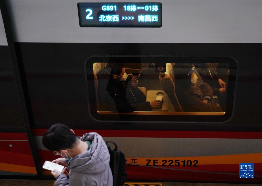 12月26日,旅客在北京西站乘坐G891次列車出行。
