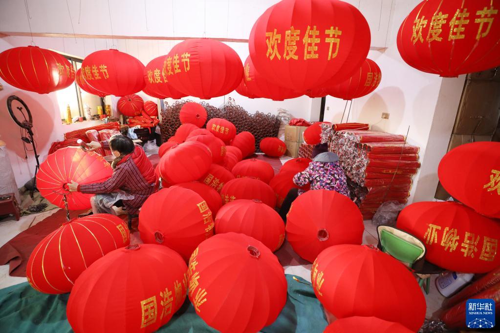 新年臨近,河南省焦作市溫縣北冷鄉(xiāng)許北張村燈籠作坊內(nèi)一派忙碌景象,村民們加緊趕制大紅燈籠,供應(yīng)節(jié)日市場。