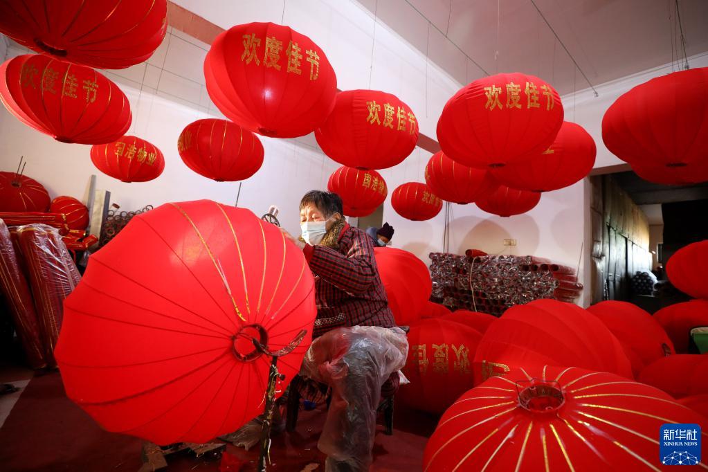 新年臨近,河南省焦作市溫縣北冷鄉許北張村燈籠作坊內一派忙碌景象,村民們加緊趕制大紅燈籠,供應節日市場。