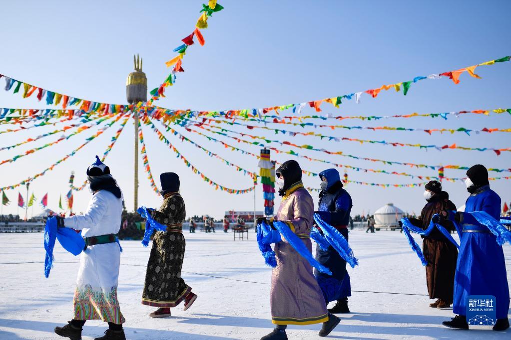 12月28日拍攝的查干湖第二十一屆冬捕節祭湖醒網儀式現場。