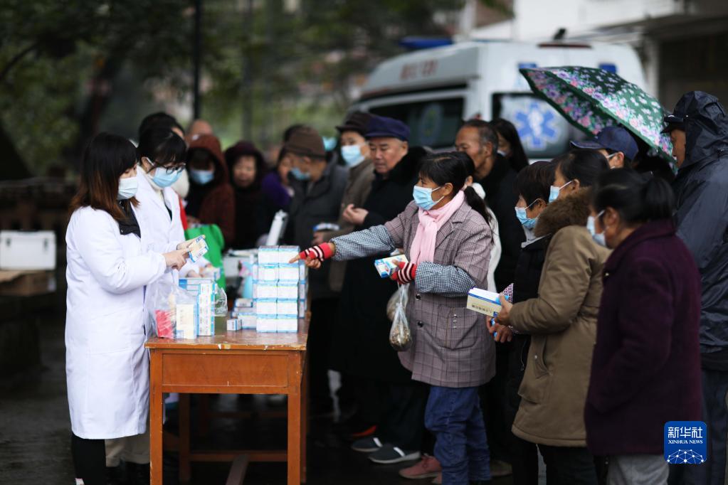 12月28日,在赤水市石堡鄉(xiāng)朝陽社區(qū),醫(yī)護(hù)人員為群眾發(fā)放藥品。