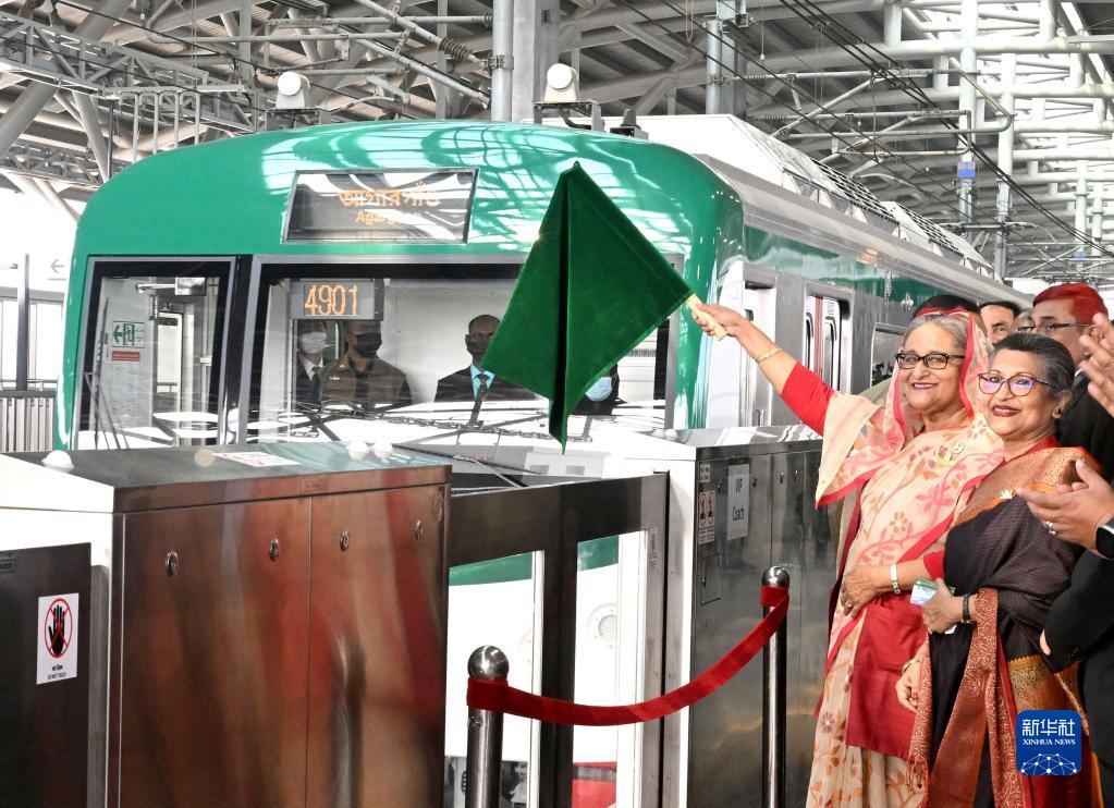 12月28日,在孟加拉國首都達卡,孟加拉國總理哈西娜(右二)出席該國首條輕軌開通儀式。