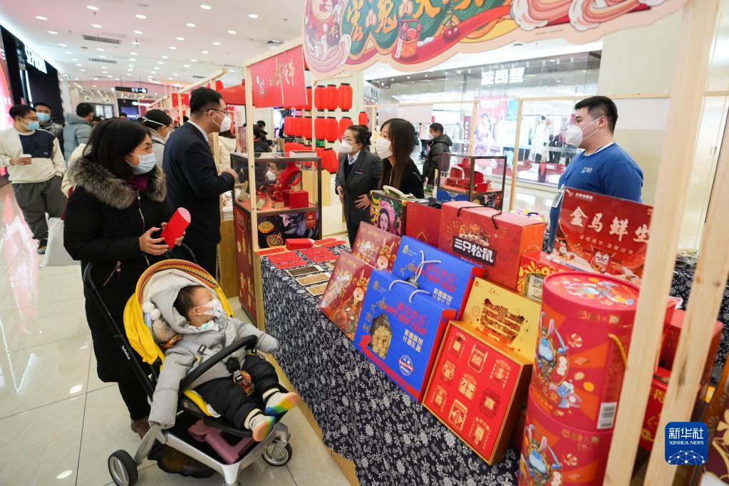 12月30日,在北京年貨節啟動活動的年貨市集區,市民了解商戶展示的年貨商品。