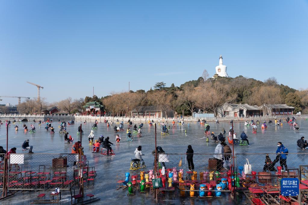 元旦假期第一天,不少游客來到北京北海公園冰場游玩,感受冬日樂趣,迎接即將到來的2023年。