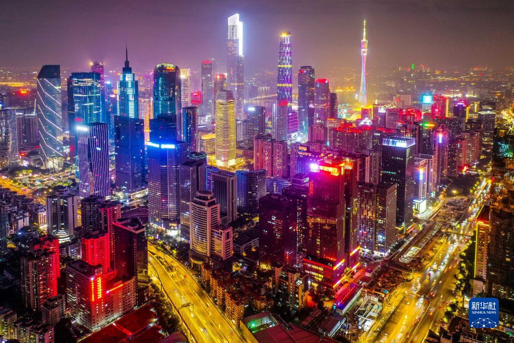 這是2023年1月1日拍攝的廣州天河路商圈夜景(無人機照片)。