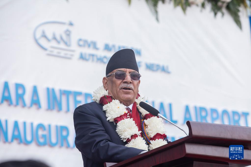 1月1日,尼泊爾總理普拉昌達(dá)在博克拉國際機場投運儀式上講話。