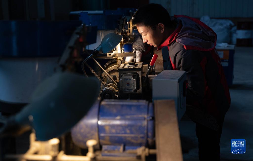1月4日,在四川省會東縣小岔河特色產業園區一家汽車零部件企業的生產車間,一名在此就業的移民群眾在工作中。