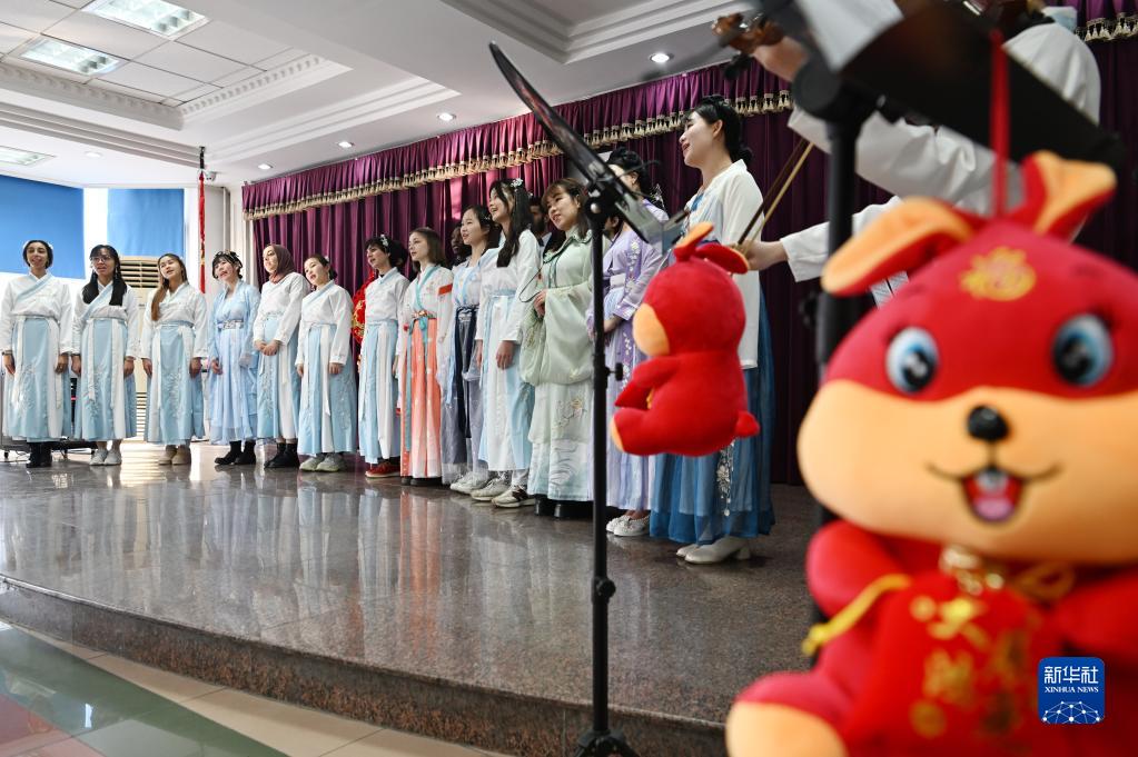 當日,天津大學國際教育學院的留學生為參加“校園春晚”加緊排練文藝節目。他們身穿漢服演唱中文歌曲,排練傳統古典舞蹈等節目,感受中國傳統文化的魅力。