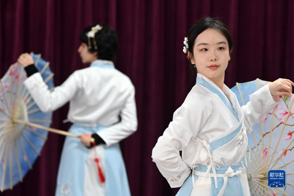 當日,天津大學國際教育學院的留學生為參加“校園春晚”加緊排練文藝節(jié)目。他們身穿漢服演唱中文歌曲,排練傳統(tǒng)古典舞蹈等節(jié)目,感受中國傳統(tǒng)文化的魅力。