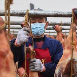 臨近新春佳節(jié),浙江省金華市的火腿企業(yè)開足馬力生產(chǎn)金華火腿,作為特色年貨供應(yīng)節(jié)日市場。