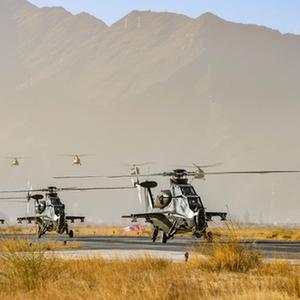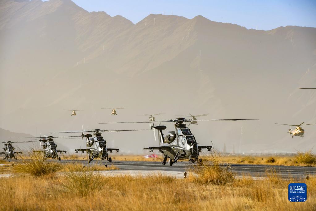 1月3日,在海拔3700米的拉薩某訓練場,西藏軍區某旅各型直升機依次升空,向預定作戰地域機動。