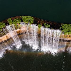 當(dāng)日,云南昆明天氣晴好,游客來到位于昆明北部山水新區(qū)的昆明瀑布公園參觀游覽。公園內(nèi)的人工瀑布落差約12.5米,寬幅約400米。