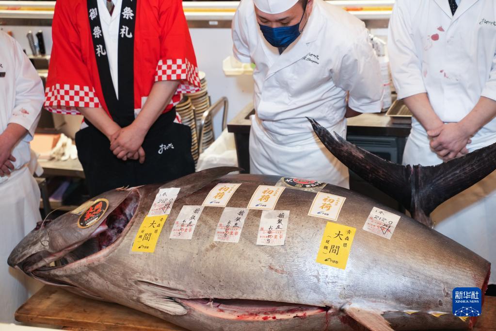 日本東京豐洲市場5日迎來今年首場金槍魚競拍交易,一尾來自青森縣大間港的藍鰭金槍魚以3604萬日元(1美元約合132日元)價格成交,創(chuàng)下當天最高競拍價。這也是“大間金槍魚”連續(xù)11年贏得新年首拍最高價。