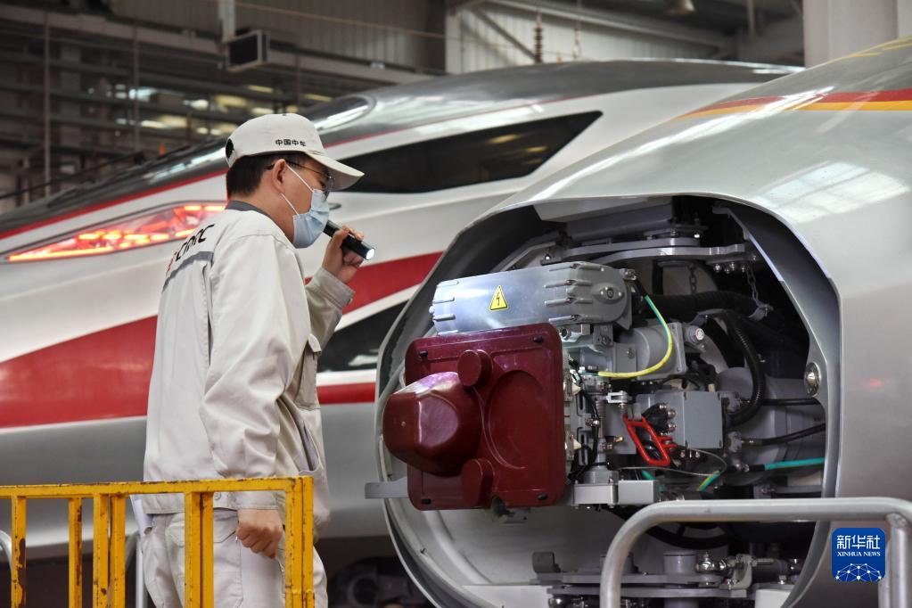 1月4日,一名技術人員在查看“復興號”智能動車組。