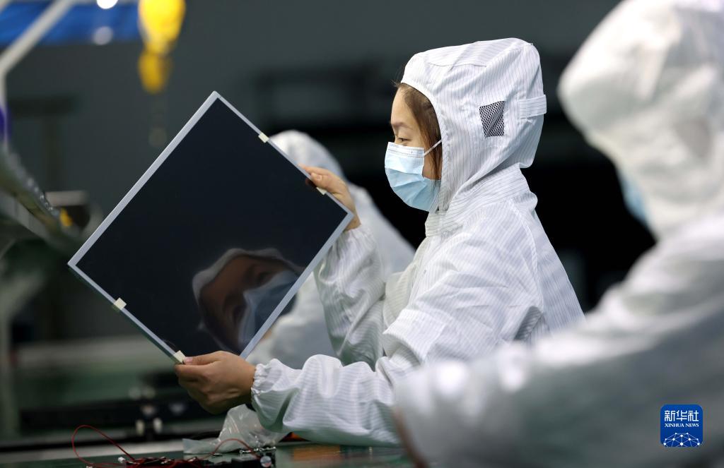 1月5日,在合肥市瑤海區長三角數字科技示范園,合肥統旭智慧科技有限公司的員工在智慧顯示屏生產線上作業。