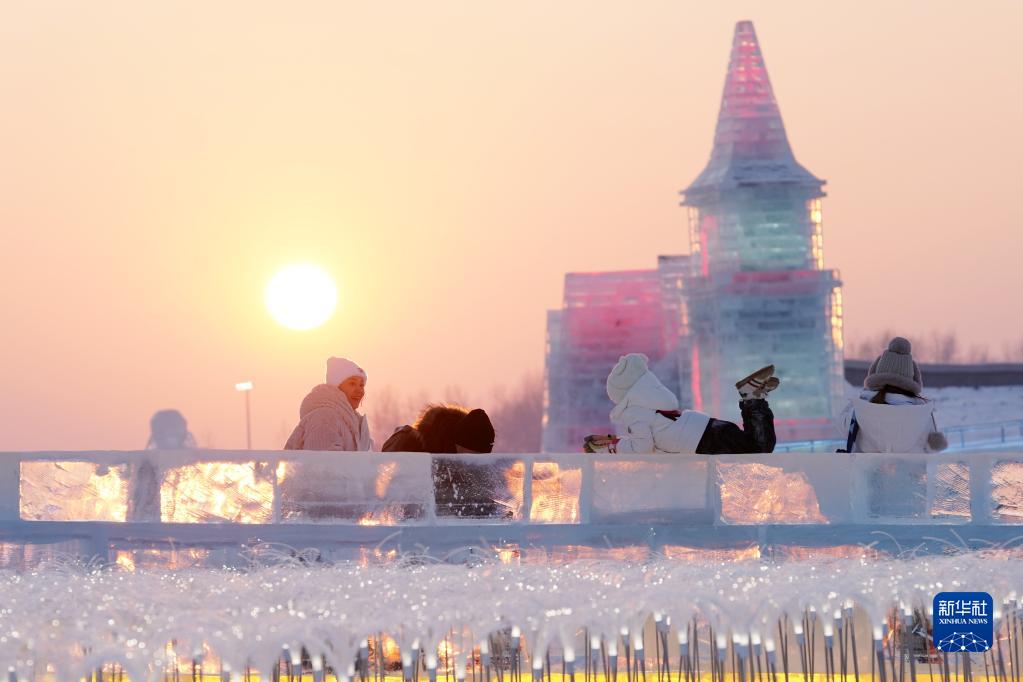 1月5日,游客在哈爾濱冰雪大世界園區游玩。