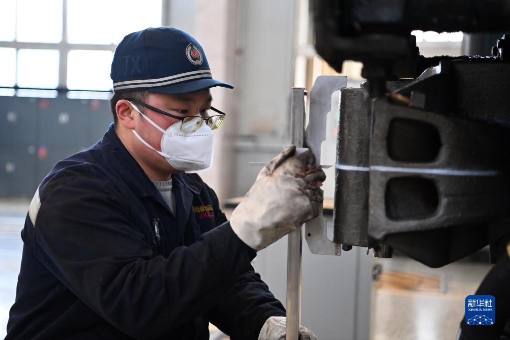 1月6日,在中國鐵路太原局集團有限公司太原車輛段太原檢修車間,工作人員在進行測量作業。