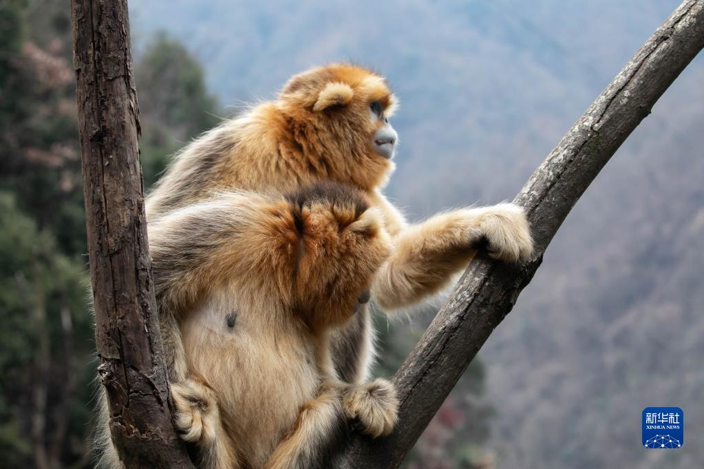 這是在大熊貓國家公園甘肅省片區裕河園區拍攝的川金絲猴(1月4日攝)。