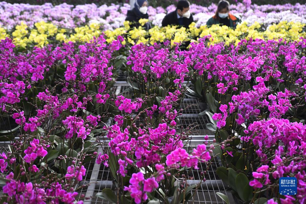 春節臨近,甘肅省臨夏回族自治州鮮花市場迎來銷售旺季,人們選購年宵花卉,迎接新春佳節的到來。
