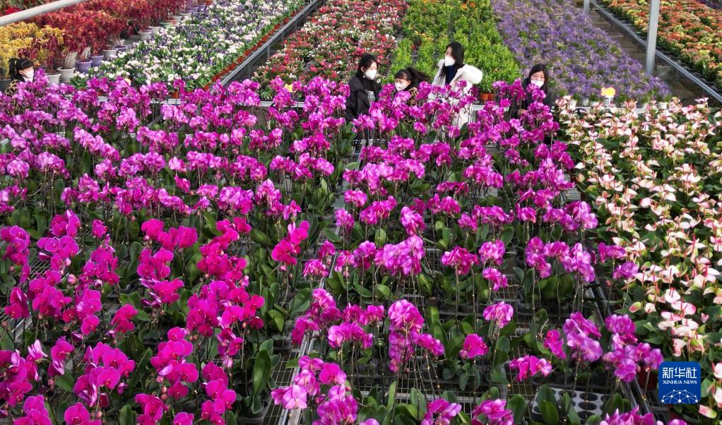 春節臨近,甘肅省臨夏回族自治州鮮花市場迎來銷售旺季,人們選購年宵花卉,迎接新春佳節的到來。