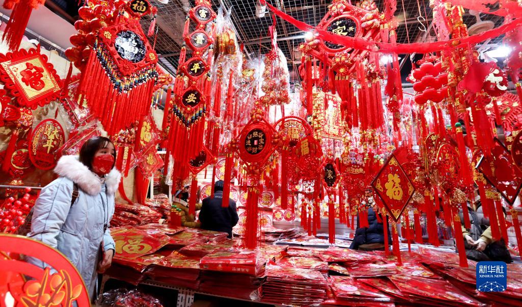 1月6日,市民在江蘇省蘇州市姑蘇區(qū)一處年貨市場內(nèi)選購春節(jié)飾品。