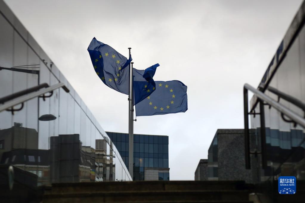 1月6日,歐盟旗幟在比利時布魯塞爾的歐盟委員會大廈外飄揚。