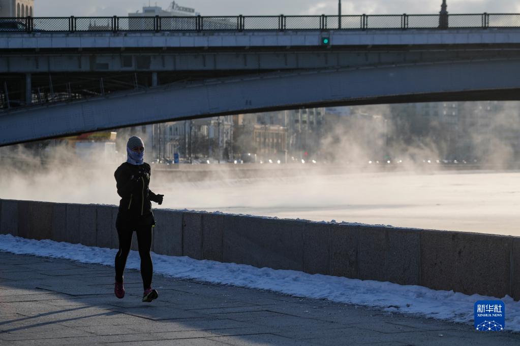 1月6日,在俄羅斯首都莫斯科,一名女子在河邊跑步。