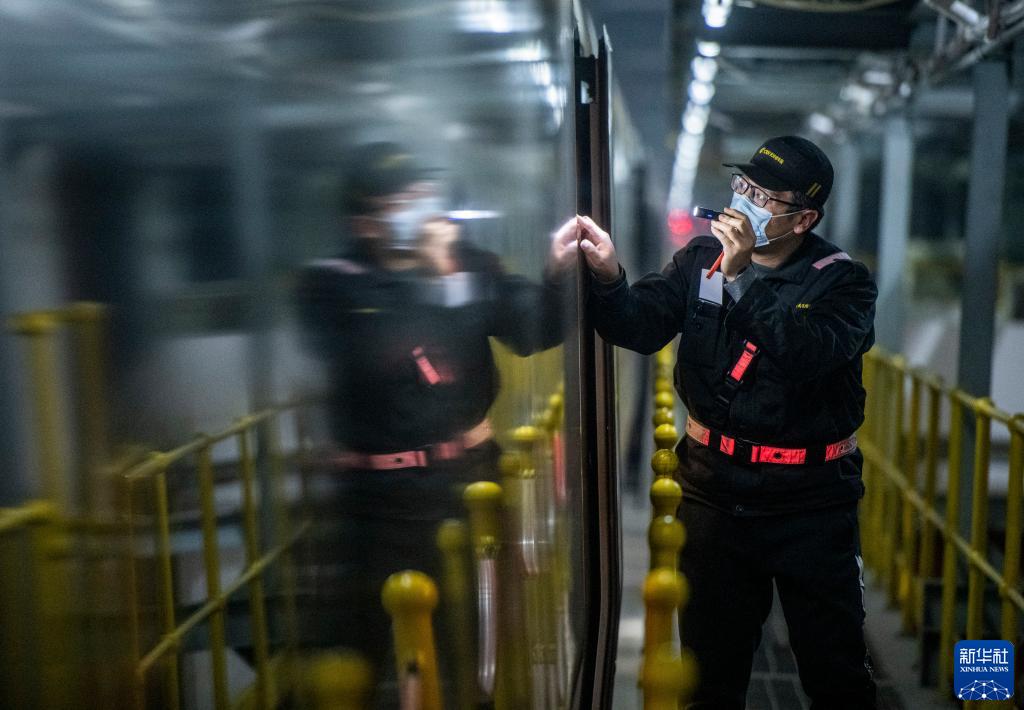1月7日,2023年春運啟動。在武漢動車段,工作人員通宵對近130組動車進行檢修、保溫作業,停靠在存車線上的動車排列整齊如同一支“陸地艦隊”。