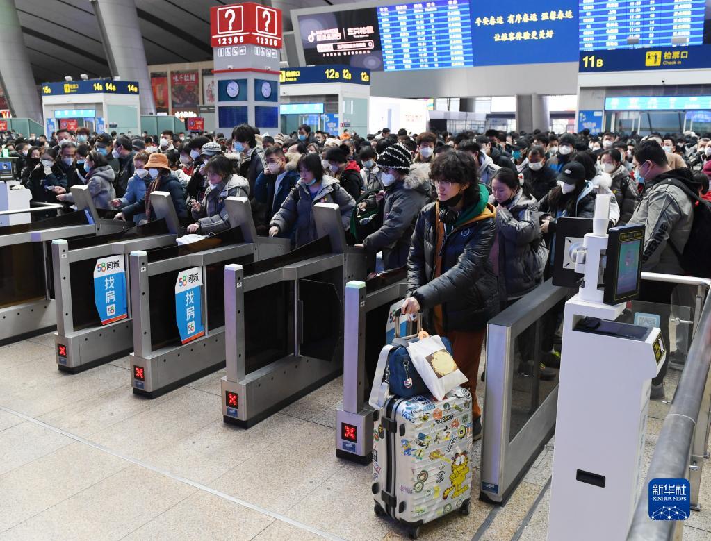 1月7日,旅客在北京南站檢票乘車。