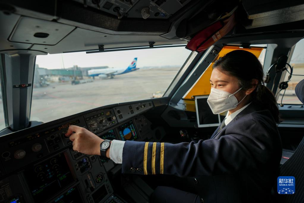 1月6日,重慶航空客機駕駛艙內,擔任副駕駛的楊靜協助她所在航班機長進行駕駛艙內的起飛前準備工作。