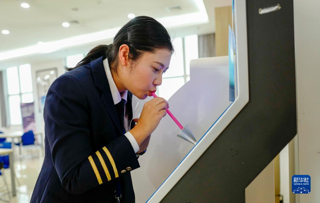 1月6日,重慶航空的機組工作區內,楊靜在進行飛行前的酒精含量測試。