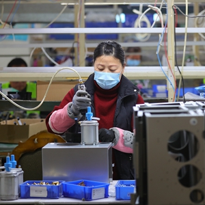 1月5日,沈陽一家醫療企業的工人在生產制氧機。