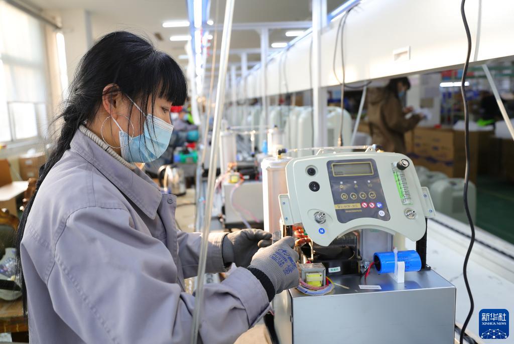 1月5日,沈陽一家醫療企業的工人在生產制氧機。