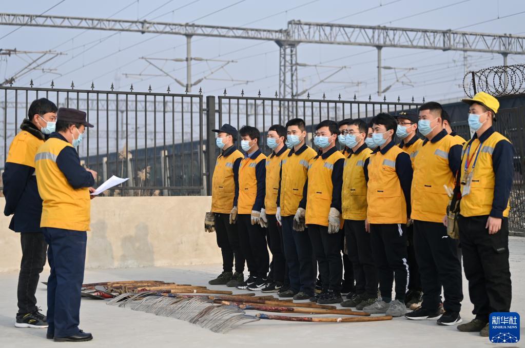 1月6日,“大學(xué)生工區(qū)”的職工在戶外集合聽取工作安排。新華社記者 李然 攝