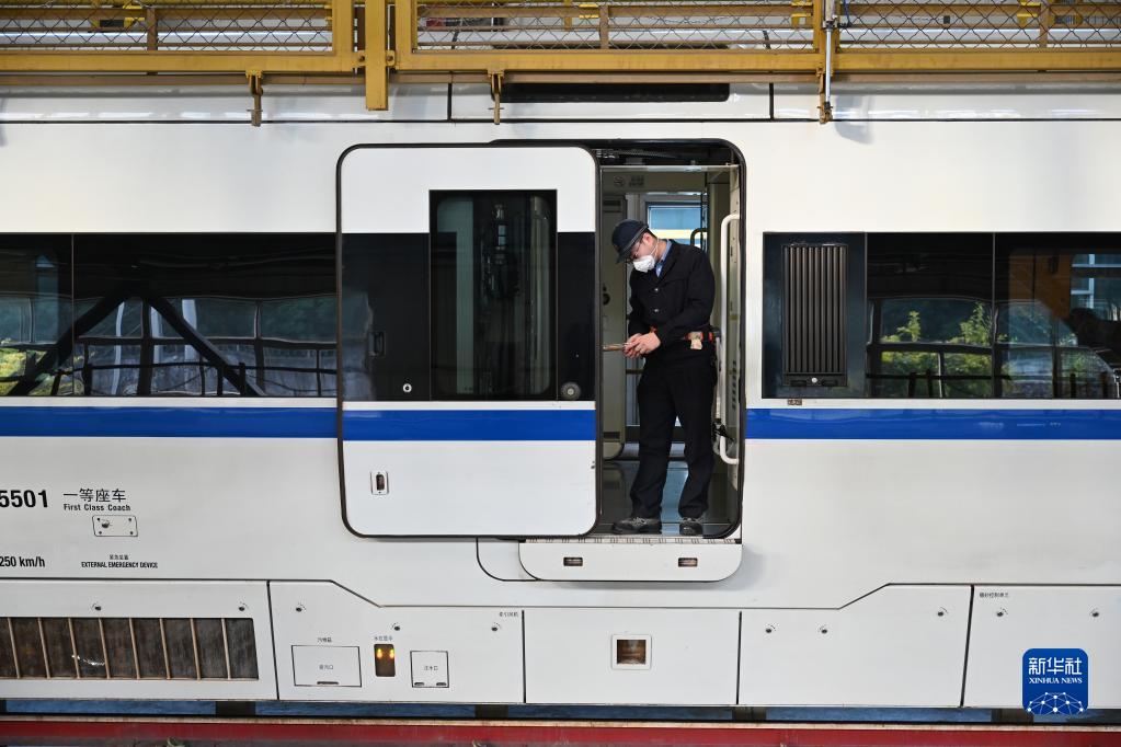 春運期間,在中國鐵路南昌局集團有限公司福州車輛段和動車段內,工作人員對綠皮火車、高鐵動車等多種車型進行檢修、維護。“火車醫生”對列車進行全方位排障,確保春運期間列車運行安全。