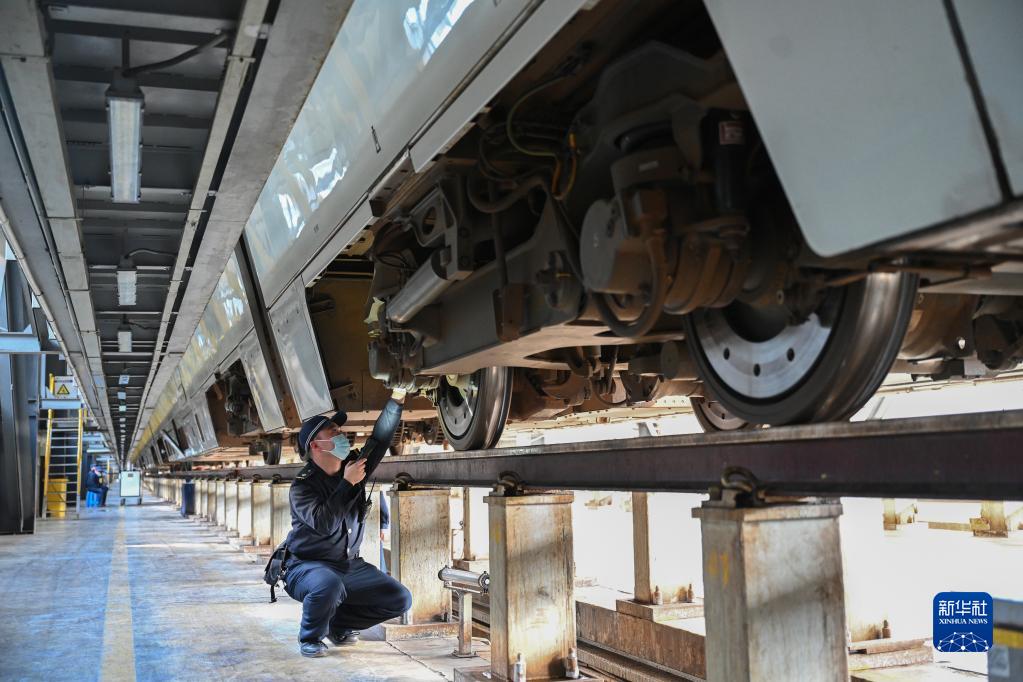 春運(yùn)期間,在中國(guó)鐵路南昌局集團(tuán)有限公司福州車輛段和動(dòng)車段內(nèi),工作人員對(duì)綠皮火車、高鐵動(dòng)車等多種車型進(jìn)行檢修、維護(hù)。“火車醫(yī)生”對(duì)列車進(jìn)行全方位排障,確保春運(yùn)期間列車運(yùn)行安全。