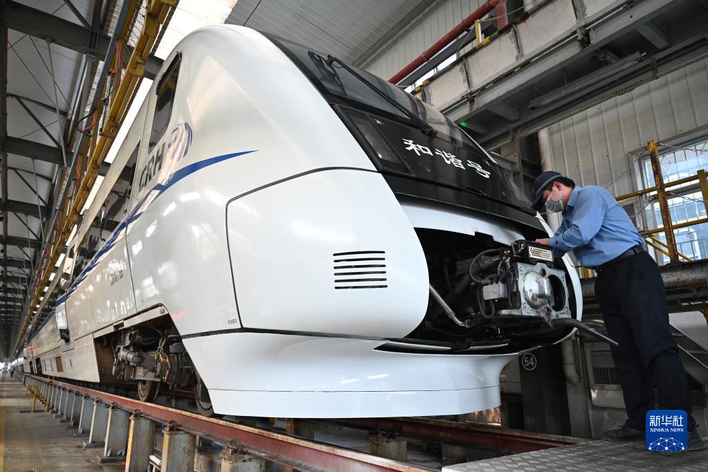 春運期間,在中國鐵路南昌局集團有限公司福州車輛段和動車段內,工作人員對綠皮火車、高鐵動車等多種車型進行檢修、維護?!盎疖囜t生”對列車進行全方位排障,確保春運期間列車運行安全。