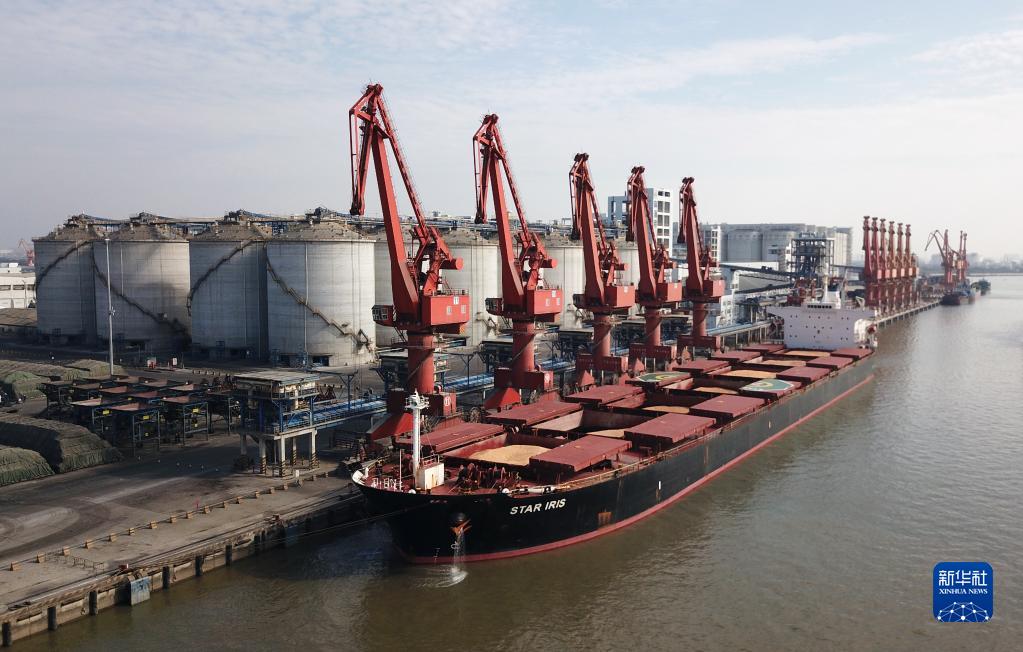 1月7日,載有6.8萬噸巴西玉米的貨輪抵達廣東麻涌港。