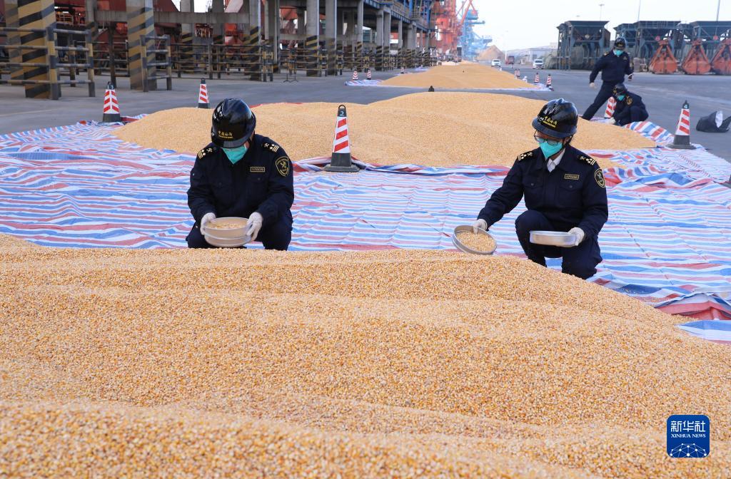1月7日,海關(guān)人員對(duì)巴西玉米進(jìn)行抽檢。