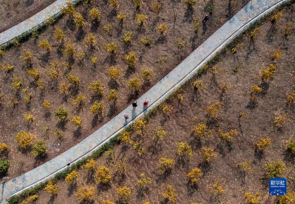 1月7日,在重慶市北碚區(qū)靜觀鎮(zhèn)臘梅博覽園,游客在賞花游覽(無人機照片)。