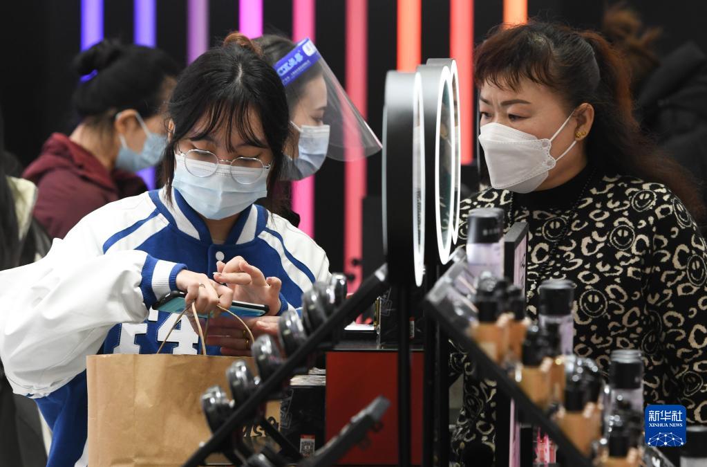 1月8日,游客在中免集團(tuán)海口日月廣場(chǎng)免稅店選購免稅商品。