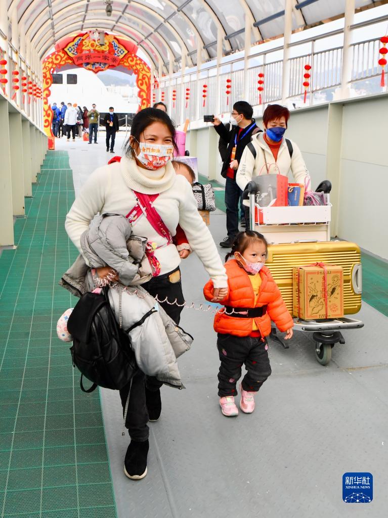 1月8日,在福州馬尾瑯岐碼頭,臺胞抵達后前往邊檢大廳。