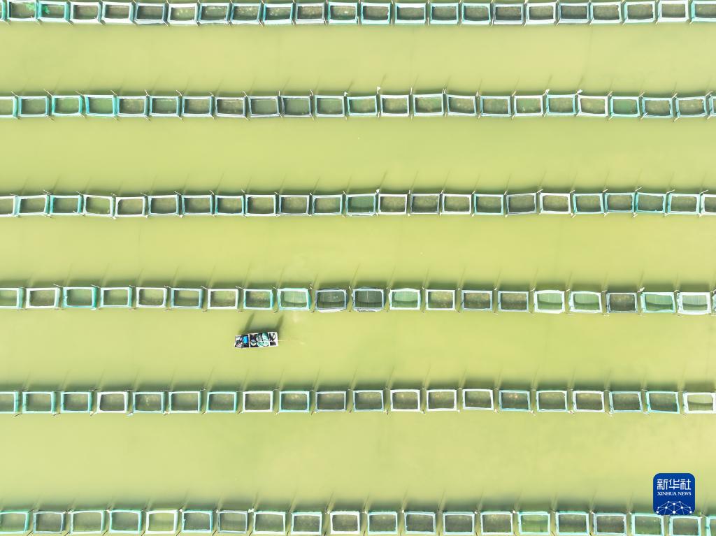 1月8日,在泗洪縣臨淮鎮螃蟹養殖基地,養殖戶在捕撈螃蟹(無人機照片)。
