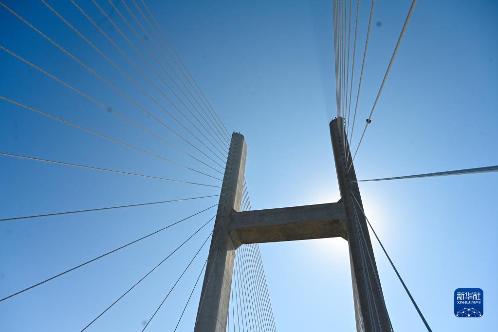 1月8日,橋梁纜索智能檢測機器人對福建平潭公鐵兩用跨海大橋的斜拉索進行檢測。