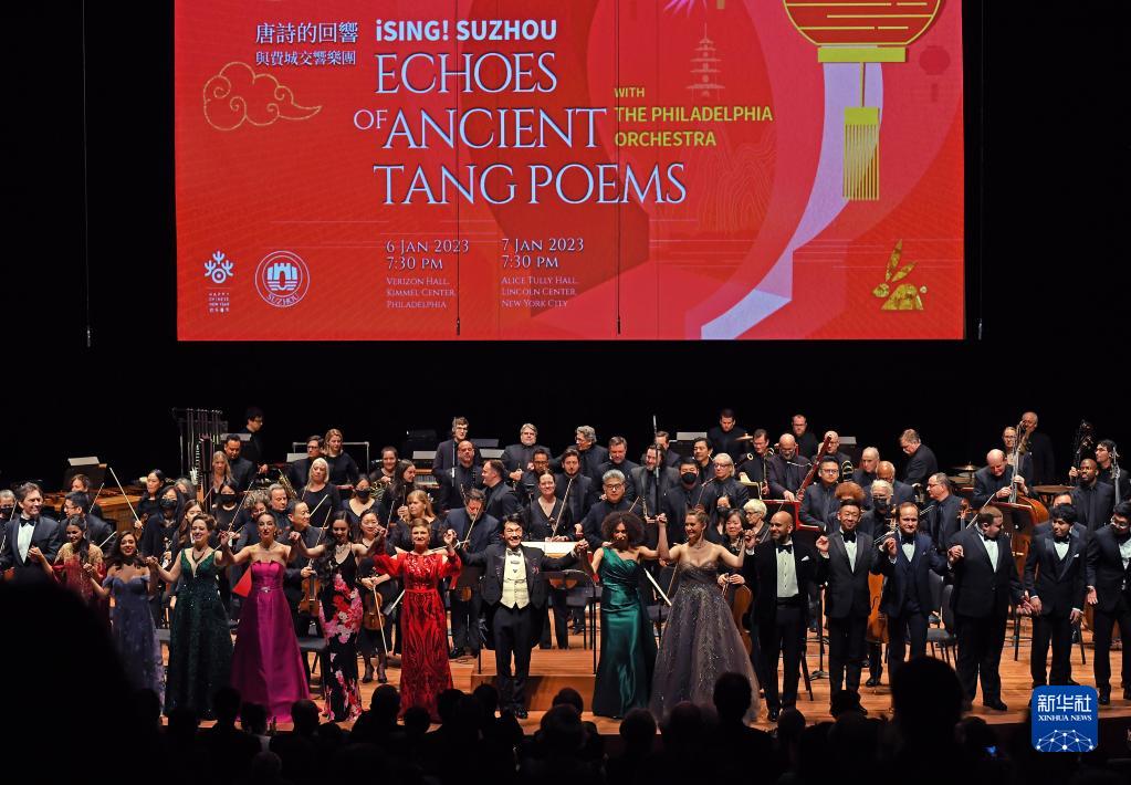 “唐詩的回響”新春音樂會7日晚在美國紐約林肯中心舉行。中國常駐聯(lián)合國代表張軍、第77屆聯(lián)大主席克勒希、中國駐紐約總領(lǐng)事黃屏、聯(lián)合國高級官員、近40個國家常駐聯(lián)合國使節(jié)以及紐約各界人士約700人觀看了演出。新華社記者 李睿 攝