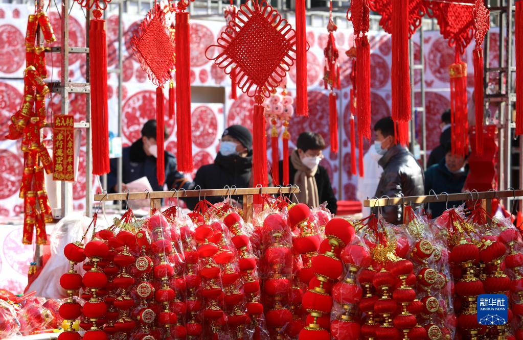 1月9日,市民在河北省石家莊市東大街年貨市場購買年貨飾品。