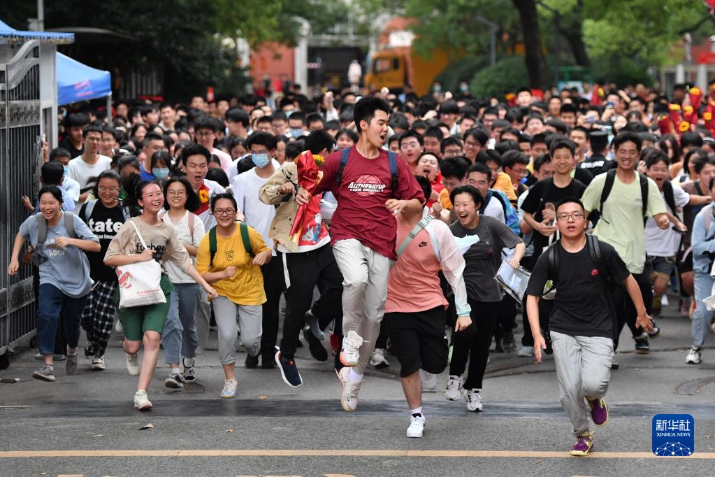 2022年6月9日,湖南省長沙市一中考點的考生在高考結束后跑出考場。