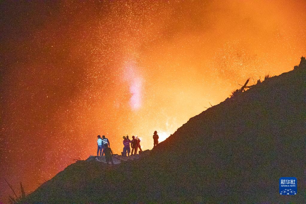 2022年8月25日晚,在重慶市北碚區縉云山,現場救援人員在火場一線滅火。截至8月26日8時30分,經各方共同努力,重慶市森林火災各處明火已全部撲滅,全面轉入清理看守階段,無人員傷亡和重要設施損失。